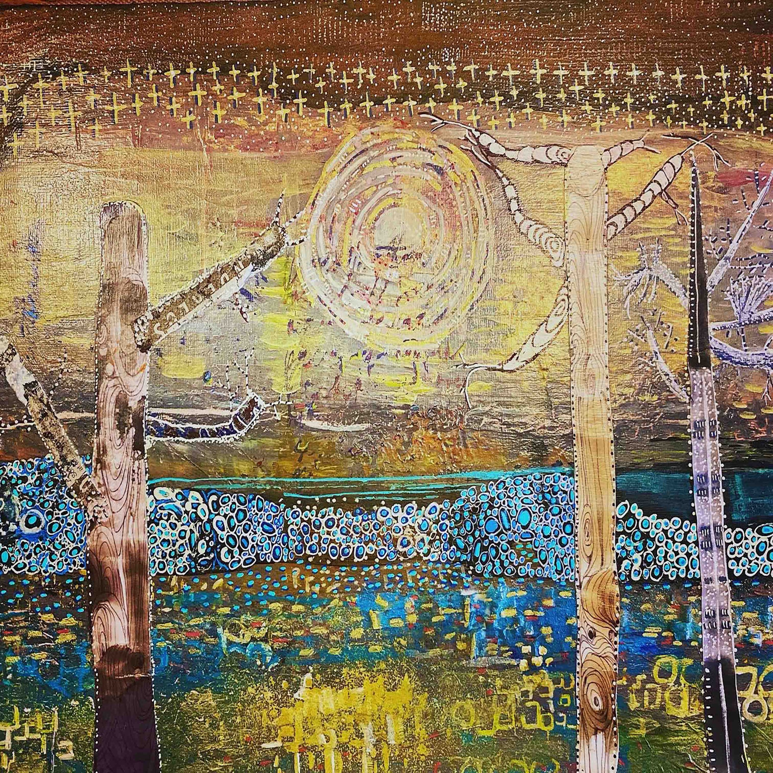 Water is my favourite element and the ocean in particular. I love the dynamism of the ocean and how its song on any given day is determined by the symphony of elements around it, the sky, the moon, the sun and wind. Often when I try to paint other things the painting ends up being an oceans scape, almost as if this form is etched in my subconscious.